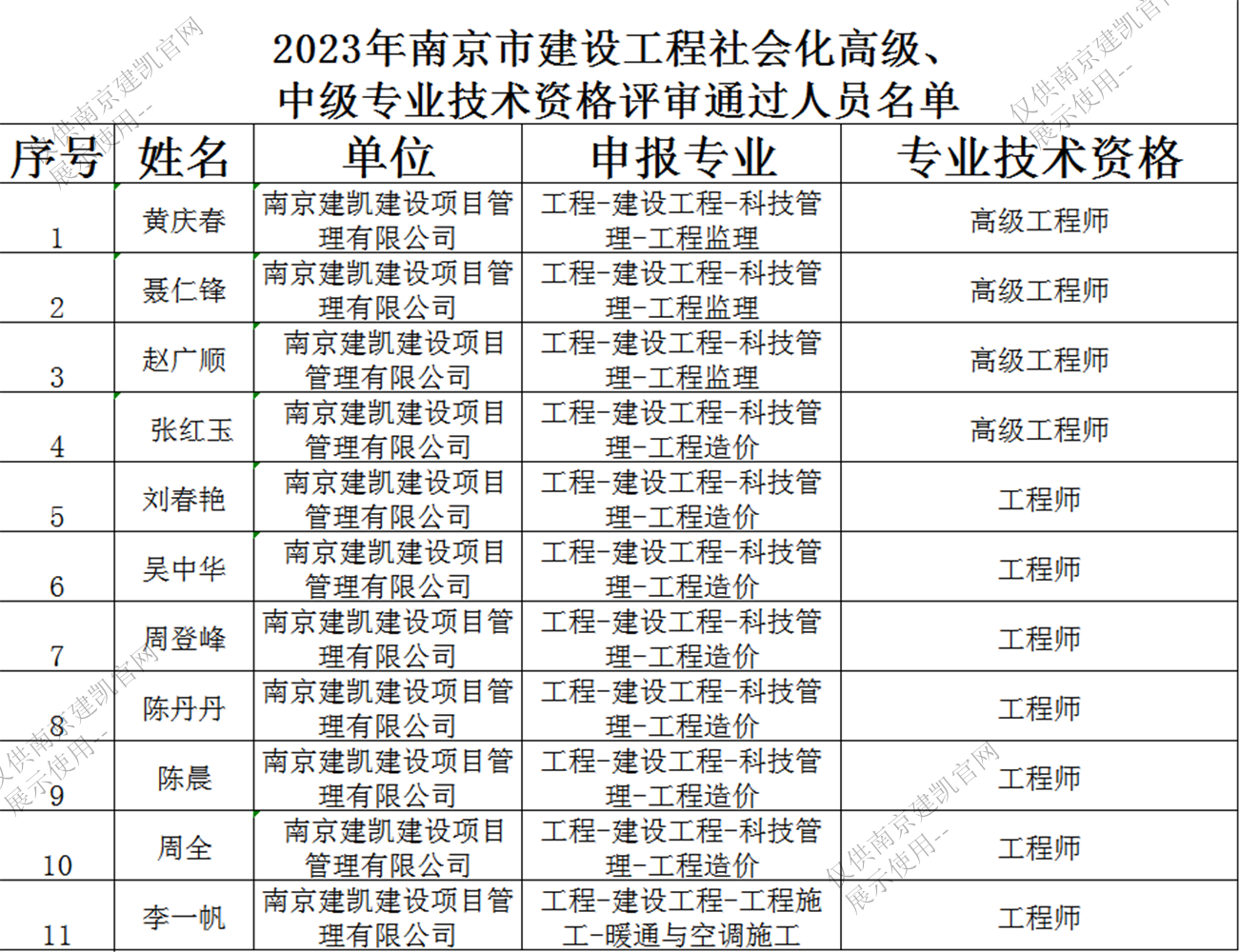 恭喜我司以下人員通過2023年南京市建設(shè)工程社會(huì)化高級(jí)、 中級(jí)專業(yè)技術(shù)資格評(píng)審