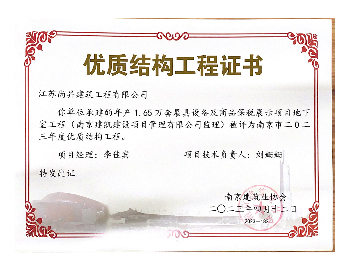 年產(chǎn)1.65萬套展具設(shè)備及商品保稅展示項(xiàng)目榮獲“2023年度優(yōu)質(zhì)結(jié)構(gòu)工程”