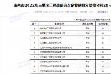 恭喜我司入選“南京市2022年四季度工程造價(jià)咨詢企業(yè)信用分值排名前20%企業(yè)名單”
