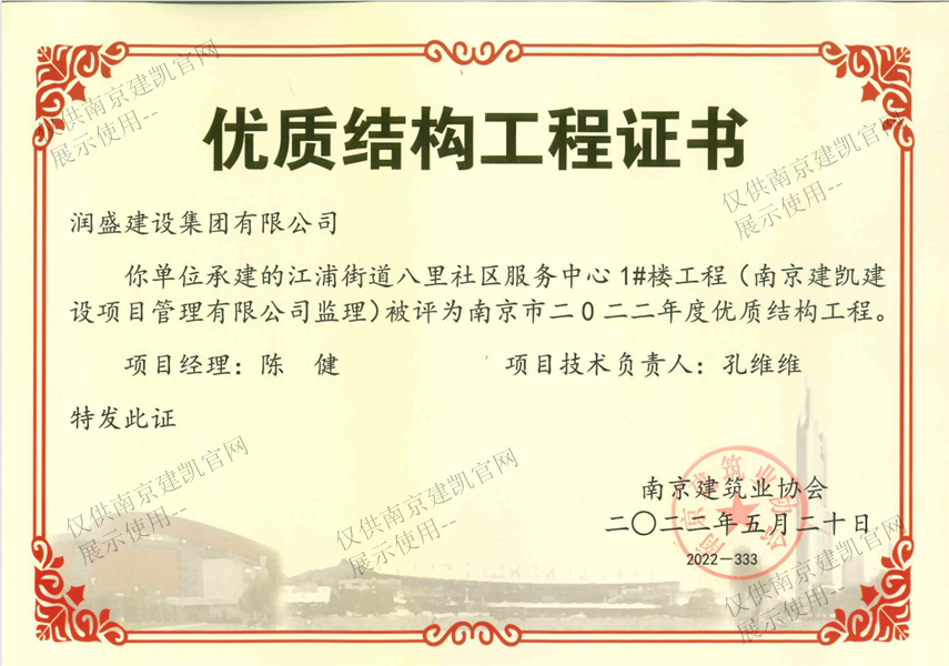 南京市二0二二年度優(yōu)質(zhì)結(jié)構(gòu)工程(江浦街道八里社區(qū)服務(wù)中心1#樓工程)