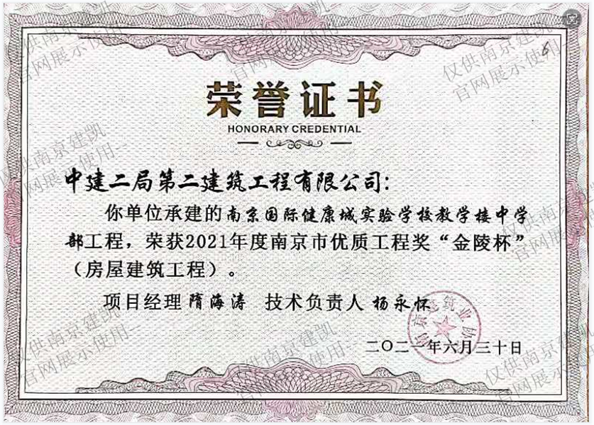 2021年度南京市優(yōu)質(zhì)工程獎(jiǎng)“金陵杯”(房屋建筑工程)